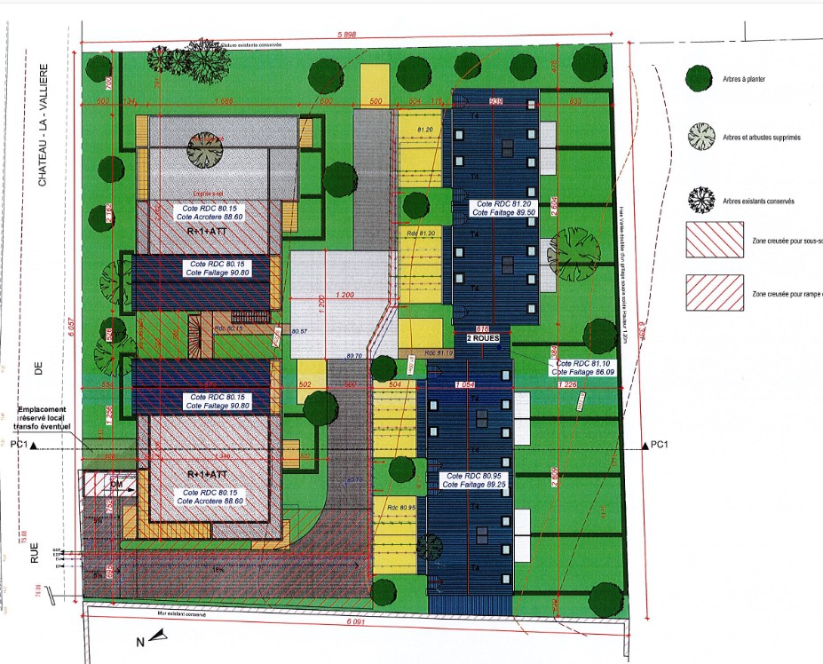 Le projet montre que la sortie de la résidence s’appuie sur ce mur en descendant du haut de terrain jusqu’au niveau de la route de Château la Vallière (voir plan ci-dessous).